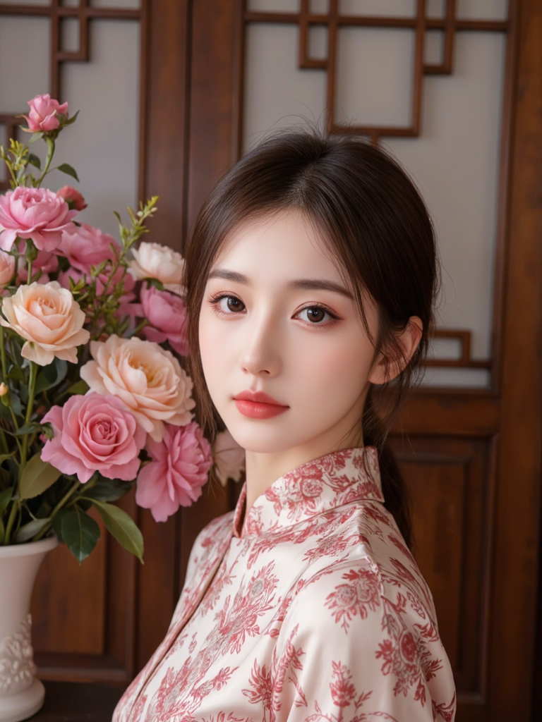 漫步在沙滩上的美少女,夜晚,天空有流星雨